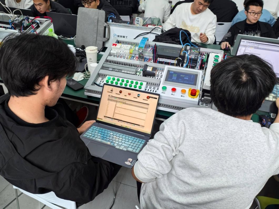 实训内容涵盖十大项目模块,包括机器人轨迹编程、智能工作站搭建、PLC通讯控制、视觉识别系统应用等核心环节。在张应豪、郭荣祥等企业导师的悉心指导下,学生们从RobotStudio仿真软件入门,逐步掌握了机器人工作站的创建、工具坐标系的设定、离线轨迹编程等基础技能,进而完成了机器人组装工作站的动态仿真、实体机器人调试等进阶任务。
