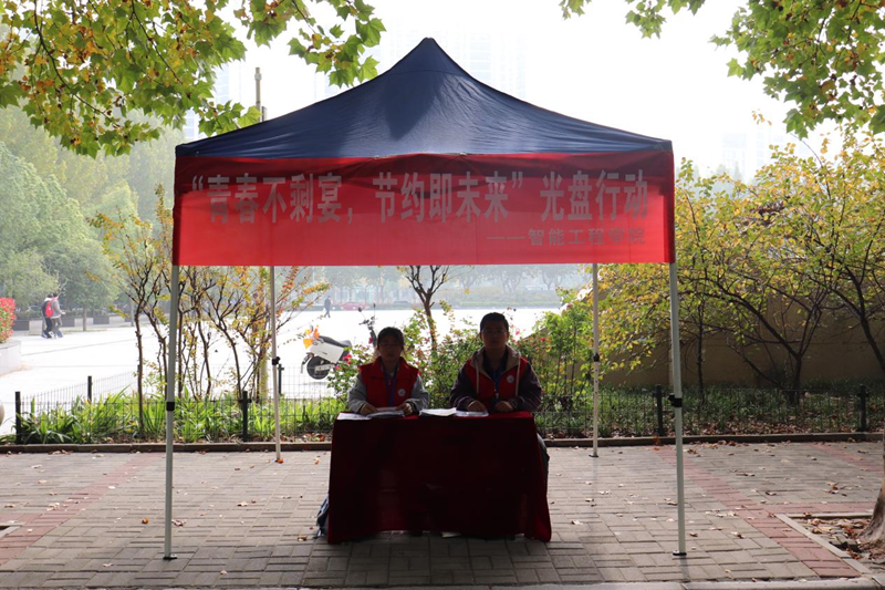 为深入贯彻习近平总书记关于制止餐饮浪费行为的重要指示精神,杜绝粮食浪费、珍惜粮食资源,同时弘扬勤俭节约的传统美德,保障粮食安全,推动形成绿色低碳的生活方式和节约型社会。智能工程学院于10月28日至10月31日分别在惠济校区和航空港校区顺利开展了以“青春不剩宴,节约即未来”为主题的光盘行动。